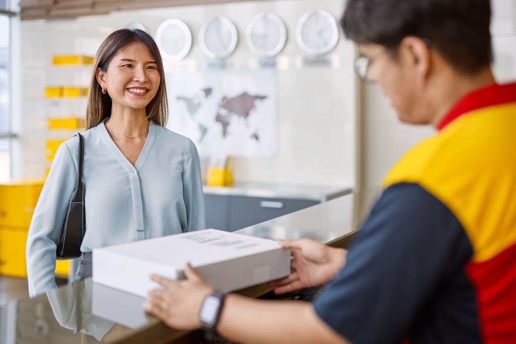 DHL Express offers a fast, secure, and reliable worldwide courier service from over 1,600 DHL Service Point locations nationwide – conveniently situated at your local high street or retail park near you. Send letters or parcels within the UK or internationally to over 220 countries and territories with DHL, the global leaders in international shipping. Free envelopes and boxes are provided in store. Simply choose the box size you require, pack and pay in store. Pricing is based on the size of the packaging and the zone that you're sending it to – no weighing, measuring or printing is required! Reduced CO2 emissions across our network with any parcel sent internationally from a DHL Service Point by the purchase of Sustainable Aviation Fuel.